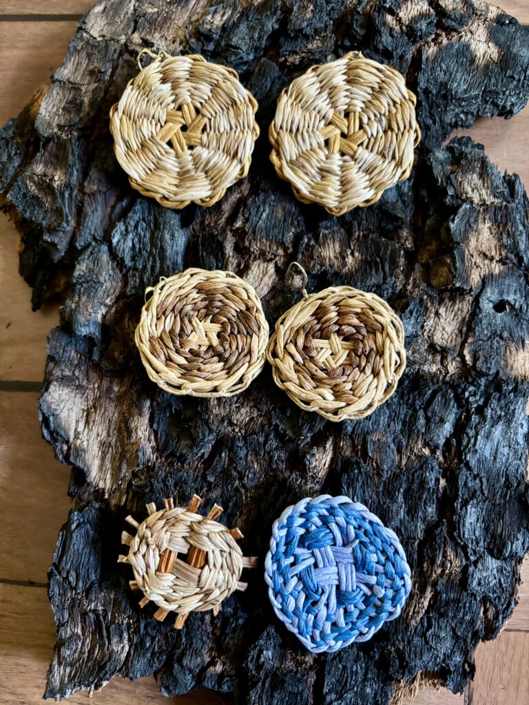 Create your very own pair of handmade earrings or wall necklace of several woven pieces joined together.